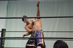 梅田ハイキック、彰人かわしてエビ固め(右写真)から、