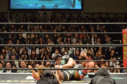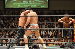 遠藤も垂直落下式ブレーンバスター(右写真)、カウント2。15分経過。