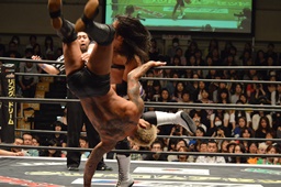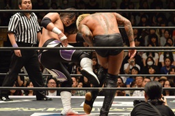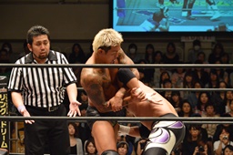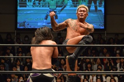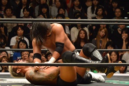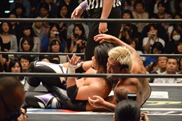 坂口ネックロック(左写真)、腹パン。