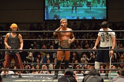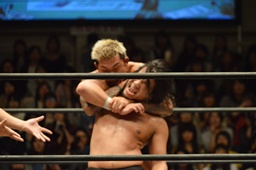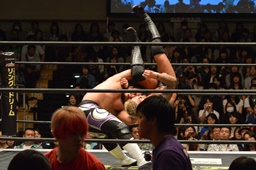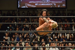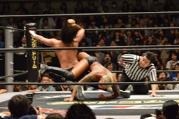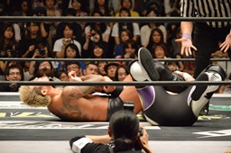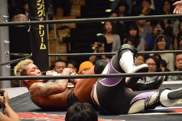 佐々木一本背負いからのエビ固め(右写真)、カウント2。