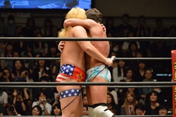 「やっと巡り合えたベストパートナーと離れ離れになるのはさみしいけど、またタッグを組める日を楽しみにしているよ、アイ・ミス・ユー。ジョーイ! いつになるかわからないれど、また一緒にこのリングで闘おう!」(右写真)