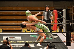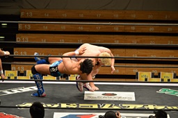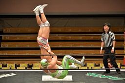 ササダンゴはボディスラム(右写真)、カバー、カウント2。