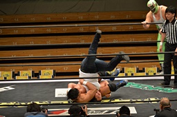ディーノは男色スープレックス(右写真)、大家にタッチ。