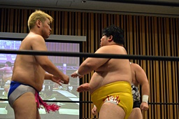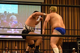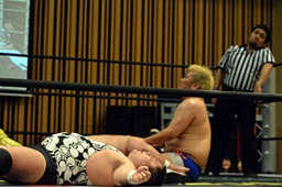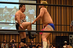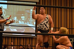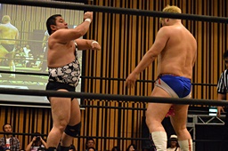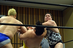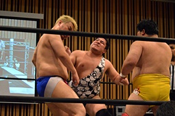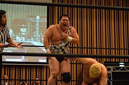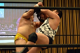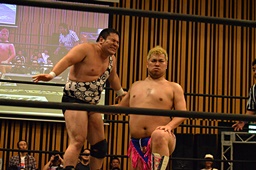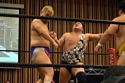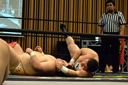ディーノが伊橋の手をアントンの上に置く(右写真)、復活した松井レフェリーがカウント3。