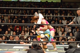 清水ロープに振る、チェリーブロックして熟女でドーン!(右写真)カバー、カウント2。