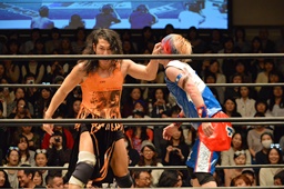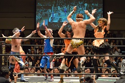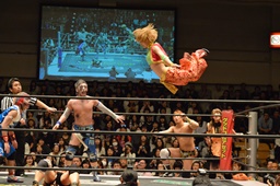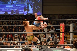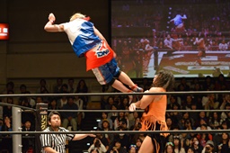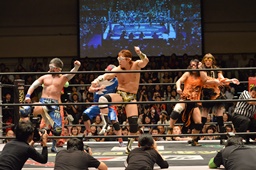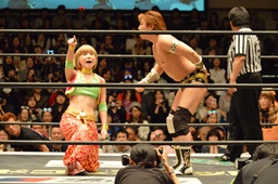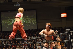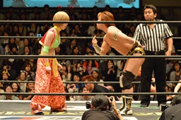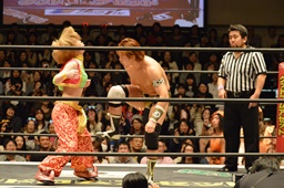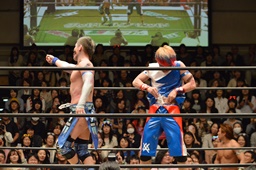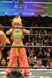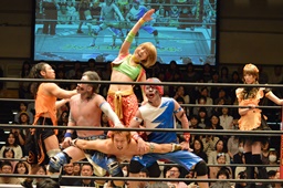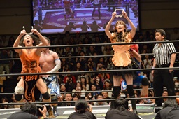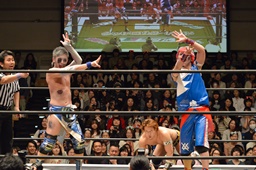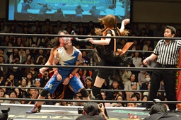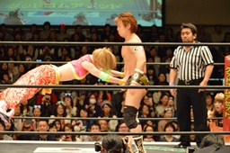 KAT-TOOの2人が入り、ダブルのガットショットから両腕を固め、坂崎が乗ってポーズ(右写真)、高梨がカット。