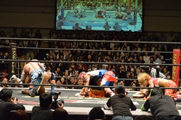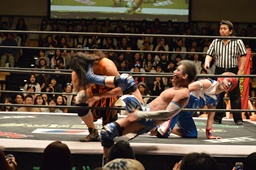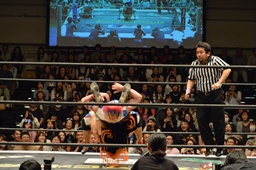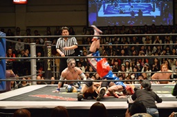 KAT-TOO&坂崎が高梨&平田&赤井をスクールボーイで丸め込む(右写真)、カウント2。