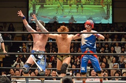 第2試合 マサ高梨(7位)&赤井沙希(11位)&平田一喜(18位) vs 大石真翔(10位)&坂崎ユカ(20位)&勝俣瞬馬(21位)
