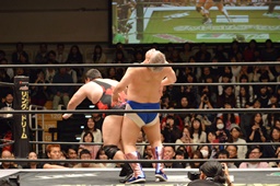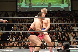ディーノがハンマーロック、アントンロープ(右写真)。竜に洗濯バサミ。