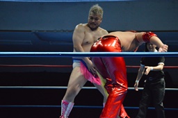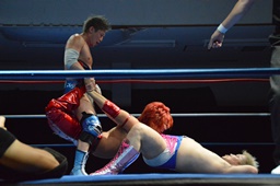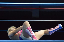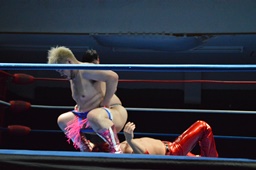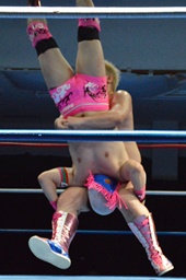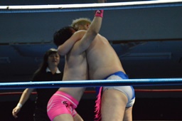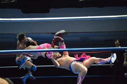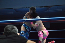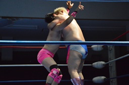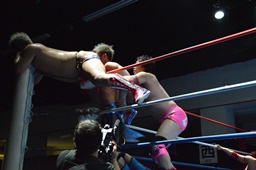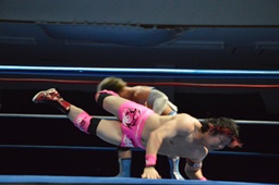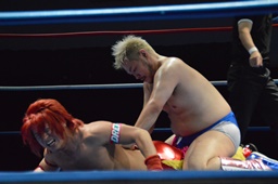続いてナイトメア3D(右写真)、大石エビ固めに、カウント2。5分経過。