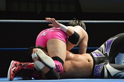佐々木キャッチしてケブラドーラ・コン・ヒーロ(左写真)。