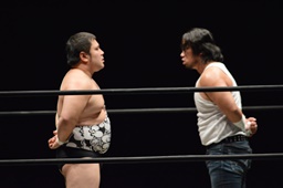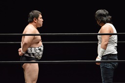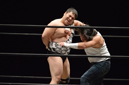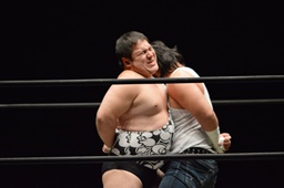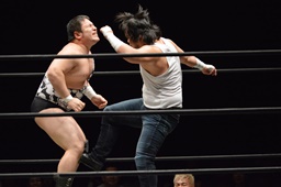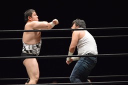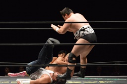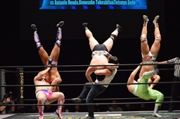 遠藤がムーンサルトプレス(左写真)、アントンがカバー、カウント2。