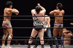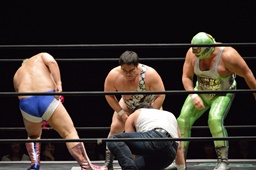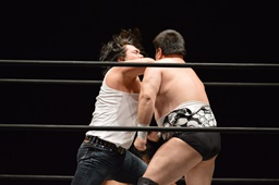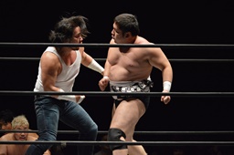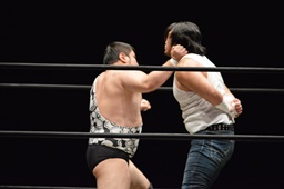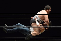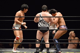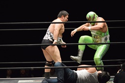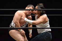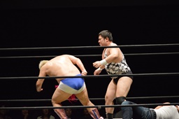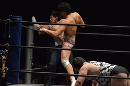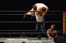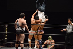 遠藤と竹下ダブルのブレーンバスター(右写真)、