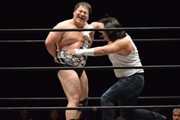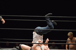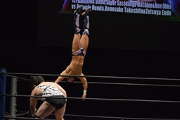 ディーノが遠藤に垂直落下式ブレーンバスター、大家もアントンに垂直落下式ブレーンバスター、ササダンゴは竹下に垂直落下式リーマンショック(左写真)。
