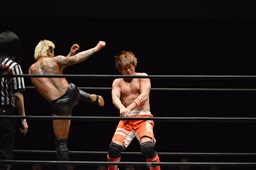 イサミドロップキック(左写真)。