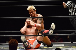 ブレーンバスター(左写真)、坂口がカット。10分経過。