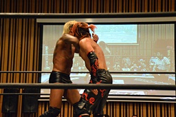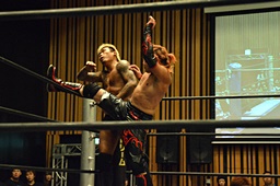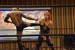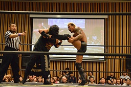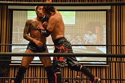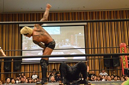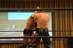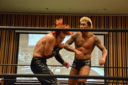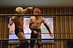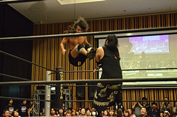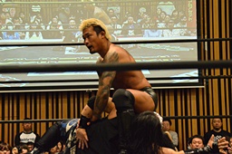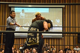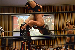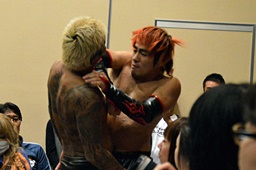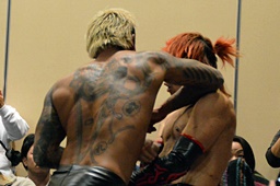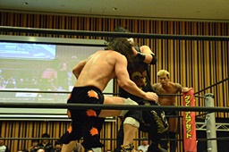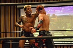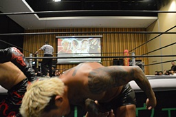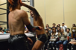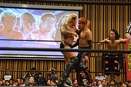 イサミが高梨にフェースロック(右写真)、坂口がカット。イサミはSAGATを呼び込んで交互にエルボードロップ、SAGATカバー、カウント2。