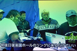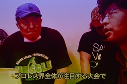 「社内で内製化するのが愚直な経営」ということで今回煽り映像はすべて佐古さんなどには外注せず、DDT映像班が製作(左写真)。