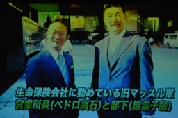 まずは生命保険会社の営業所長と部下でもある旧マッスル軍・ペドロ高石と趙雲子龍の映像(右写真)。