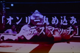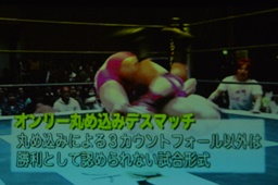 ルールは「丸め込みによる3カウントフォール以外は勝利として認められない試合形式」(右写真)