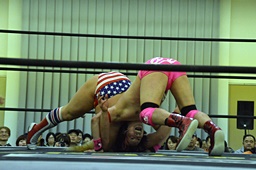 入江今度はブラックホールスラム決める(右写真)。石井にタッチ。