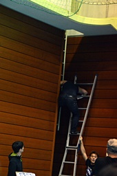 バルコニーに上る2人(左写真)。