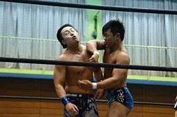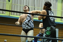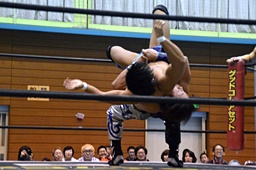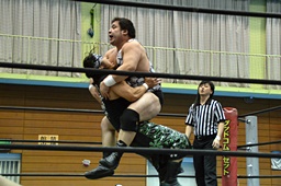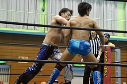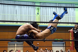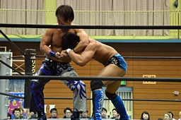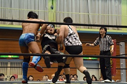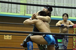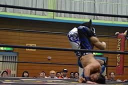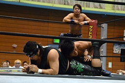 HARASHIMA入って串刺し攻撃2連発、ウラノがフランケンシュタイナー(左写真)、