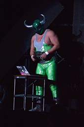 ハリケーンミキサーとは、自らのロングホーンを前に突き出し、猛烈な体当たりを仕掛ける技。業を受けた選手は体が頭部、胴体、右手、左手、右足、左足の6つにバラバラになる。(左写真)