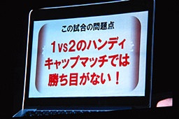 話を戻してこの試合の問題点「1vs2のハンディキャップマッチでは勝ち目がない!」(左写真)