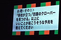 「茶柱が立つ」「四葉のクローバーを見つける」以上にいいことが起こりそうな予兆を教えてください(右写真)