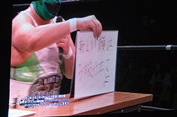 「プロレスラーとしての強み」は「パワーポイントを使ってのプレゼン」と「垂直落下式リーマンショック」いつものように絵は技をかけてる方が逆(右写真)。