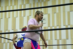 勝俣入場(右写真)。ディーノと勝俣はホモというアナウンス。