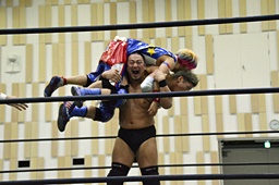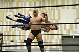 ディーノスナップスープレックス(左写真)。