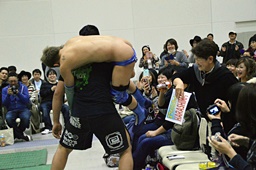 地元の英雄・大石はそのままの姿勢を続ける(右写真)。