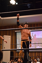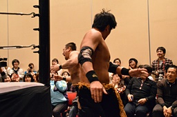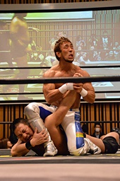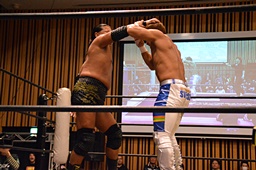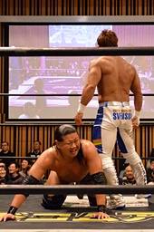 ラリアット相打ち、KENSOが打ち勝つ(左写真)。