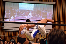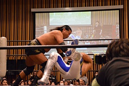 大鷲KENSOにビッグブーツ(左写真)、諸橋にはドラゴンスクリュー。