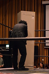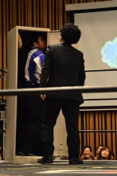 レフェリー2人をロッカーに入れる(右写真)