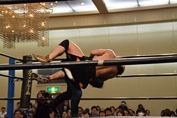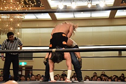 高梨タカタニックの体勢、大家持ち上げる(左写真)、