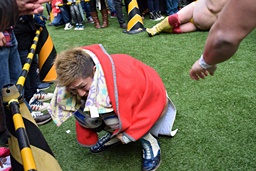 その2人の周りを伊橋が「イェイ、カモン!」しながら一周(右写真)。