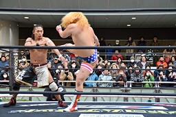 先発はHARASHIMAとアントン。HARASHIMAローキック(左写真)。
