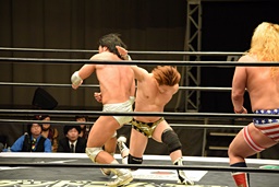 平田ロープに飛ぶ、彰人ハネ上げてGTS(左写真)、
