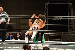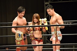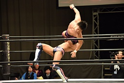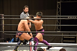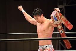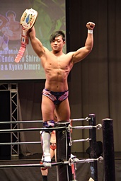 23日の後楽園大会でKO-Dタッグ王座を獲得した遠藤入場(左写真)。
