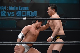 樋口も逆水平打ち返す(右写真)。