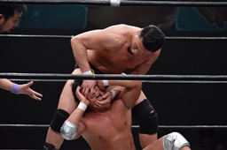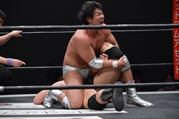 片逆エビ(右写真)からキャメルクラッチ、樋口ロープ。