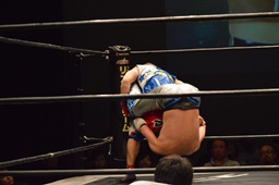 勝俣変形のトルネードスープレックス(右写真)。これはいい。