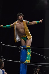 勝俣コーナーに上って450°スプラッシュ(右写真)、オースギかわす。