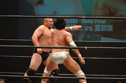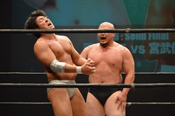 宮武力で返そうとするが(左写真)戻される。5分経過。