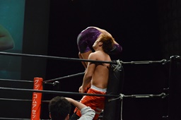 コーナーに振ってヒザ蹴り(左写真)、