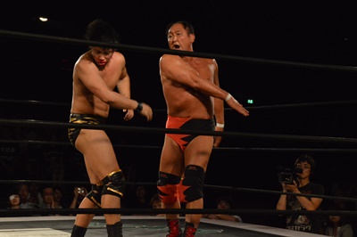 大谷逆水平、渡瀬エルボー(右写真)、大谷張り手。