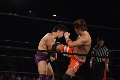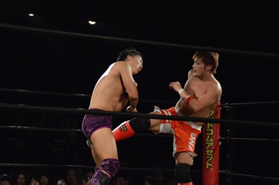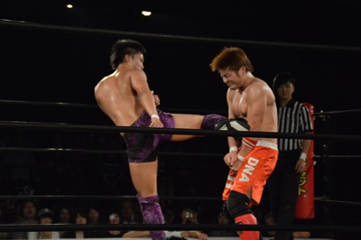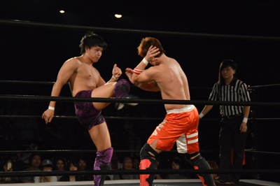 梅田レッグロック(左写真)、中津はボディシザーズに。ブレーク。